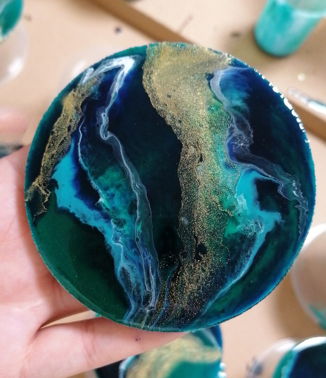 Mária Čajková ist eine zeitgenössische Künstlerin aus der Slowakei (Senica). Seit 2018 spezialisiert sie sich auf die Arbeit mit Epoxidharz, durch das sie handgegossene, mehrschichtige Werke schafft, die durch eine eigene visuelle Sprache geprägt sind und sich je nach Licht und Blickwinkel verändern.